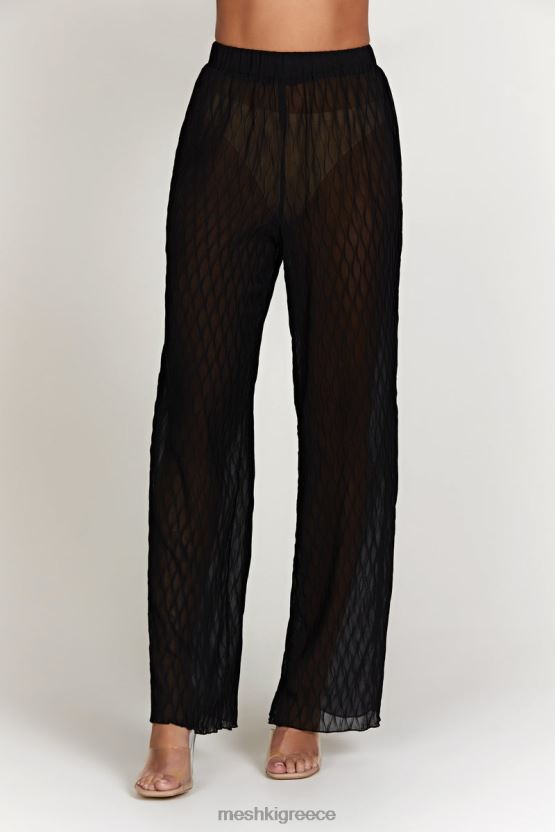 Meshki παντελόνι με πιέτες καρλά κυματιστό μαύρος είδη ένδυσης JJN40N1488