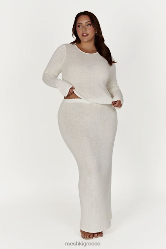 ένα φαρδύ πλεκτό με ακατέργαστο στρίφωμα και λαιμόκοψη στο πλήρωμα προσφέρει μια χαλαρή αίσθηση στη μαριμπέλ. το κόψιμο με παραγάδι δημιουργεί μια μακρόστενη φόρμα στο σώμα, ενώ το απαλό πλεκτό ύφασμα είναι ζεστό και αγκαλιά με το δέρμα. Ολοκληρώστε την εμφάνιση με την ασορτί μάξι φούστα με πλέξη maribelle ή τζιν meshki.